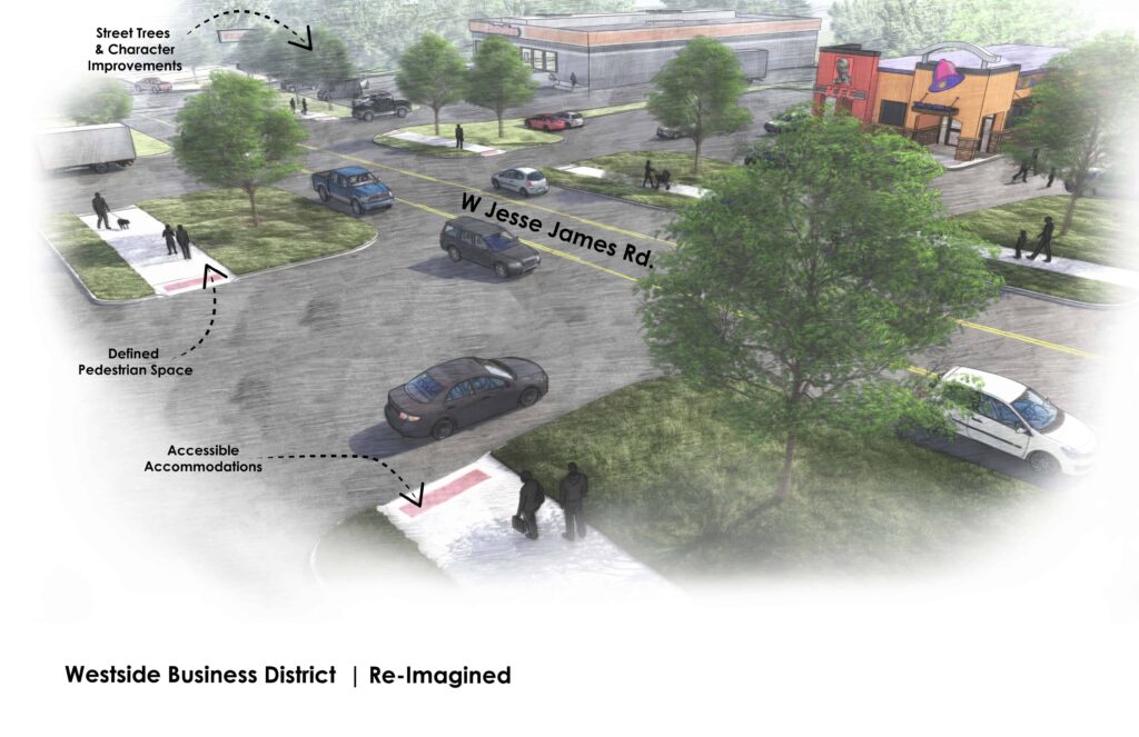 Excelsior Springs City Manager Molly McGovern states, “The Safe Streets & Sidewalks Project is a result of two separate grassroots efforts that seek similar outcomes. Families expressed an overwhelming need for sidewalks and traffic improvements on the west side of Excelsior Springs due to traffic conflicts between cars and pedestrians before and after school. In tandem, the Chamber of Commerce began to evaluate how to get travelers to visit businesses on the west side of the community. Rather than to drive further into downtown Excelsior Springs, without stopping. Historic Downtown Excelsior Springs is a major attraction to visitors and residents alike. Fall 2018, the Chamber of Commerce formed the Westside Committee to evaluate needs within the west side business district, including the need for visual, and functional improvements to capture consumer spending. The Committee has formed the Westside Community Improvement District (CID) to provide for the desired improvements.